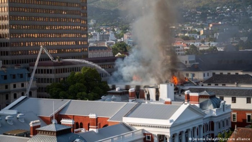 Πυρκαγιά ξέσπασε σήμερα στο κτήριο του Κοινοβουλίου της Νότιας Αφρικής στο Κέιπ Τάουν, με πλάνα από ΜΜΕ να δείχνουν φλόγες να βγαίνουν από την οροφή του κτηρίου και μια στήλη καπνού να είναι ορατή από μεγάλη απόσταση.