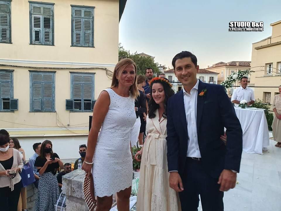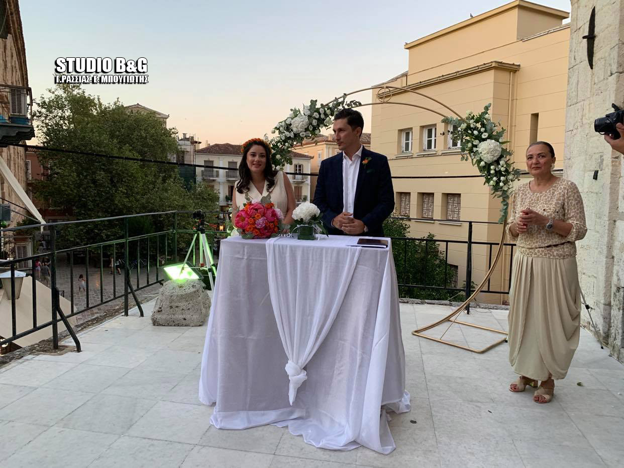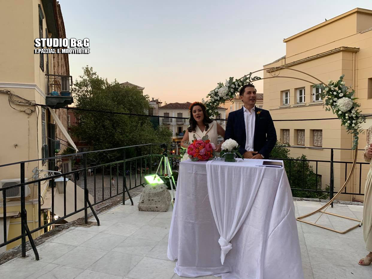 Το ερωτευμένο ζευγάρι παντρεύτηκε με πολιτικό γάμο στο Βουλευτικό Ναυπλίου το απόγευμα του Σαββάτου 22 Αυγούστου, από τον Δήμαρχο Ναυπλιέων Δημήτρη Κωστούρο, παρουσία των συγγενών, φίλων και γνωστών.